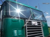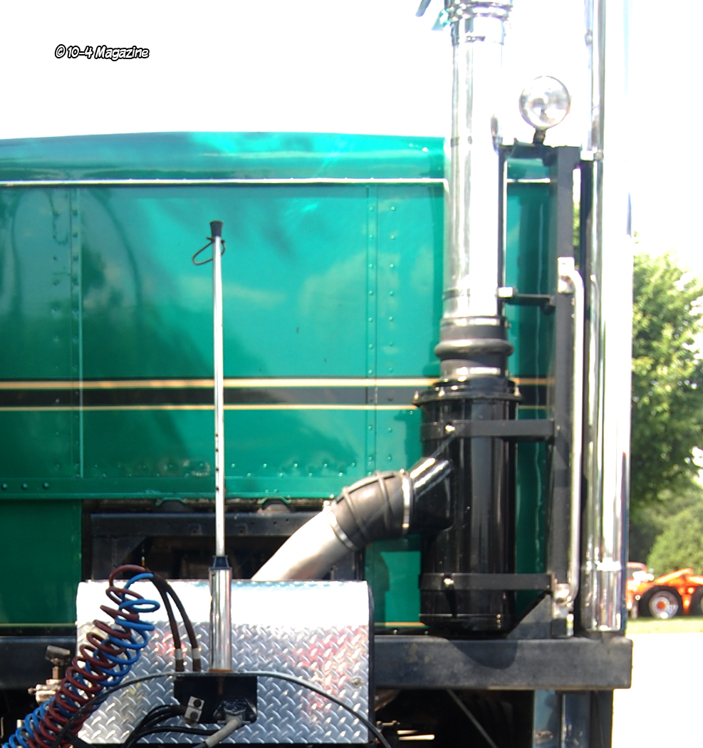 Externally, the cab is all original except for the aluminum steps from a cabover Freightliner. “The original steps were pretty high and small, so I decided to upgrade the ease of entry into the truck,” as Richie put it. Besides the steps, the Diamond T now sports a pair of 100-gallon Kenworth K100 polished aluminum fuel tanks, 6-inch exhaust pipes mounted on a custom exhaust system, with the air cleaner moved to the rear of the truck instead of under the passenger side seat. The air cleaner is from a GMC Astro and the battery box is from a Kenworth T600A. Painted in PPG Medium Jade Metallic, Metallic Black, and trimmed in Gold leaf paint, the Diamond T’s paint scheme was inspired by Kenworth. “With the help of my neighbor Jim Wanca, I painted the truck in his potato barn,” said Richie. To finish out that largecar look, Richie mounted an 18” bumper with 11 lights across the bottom, between the license plates mounted on each end.
