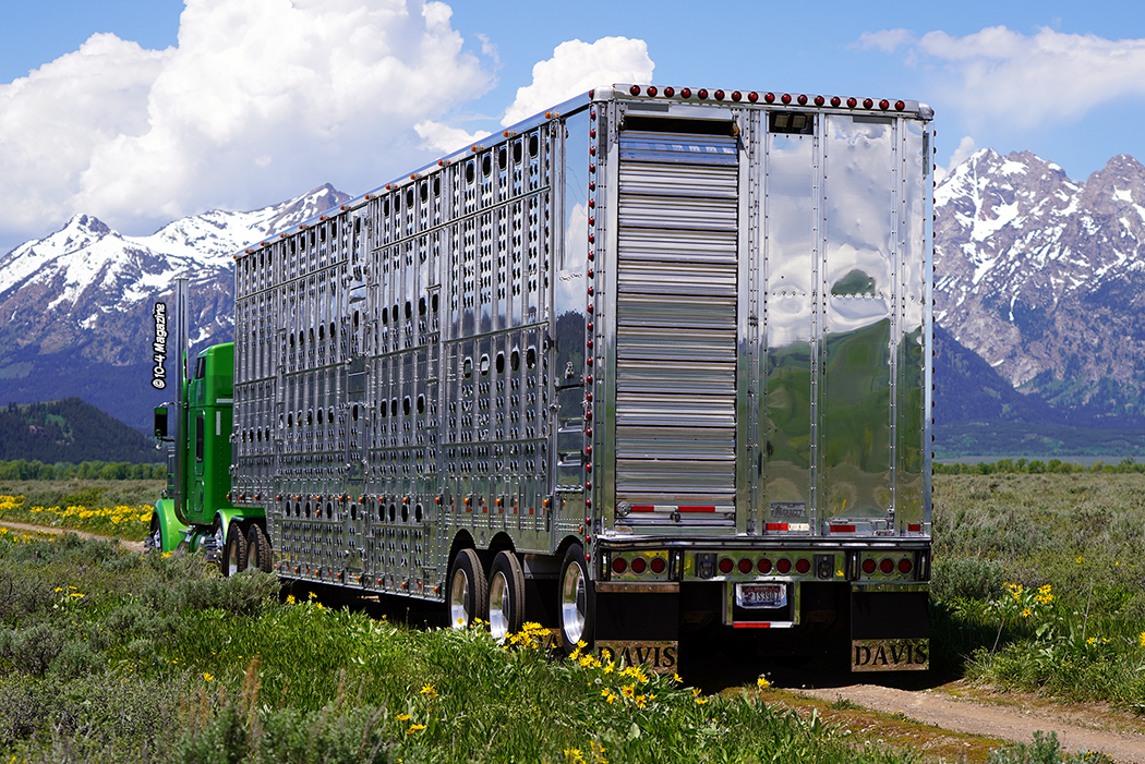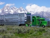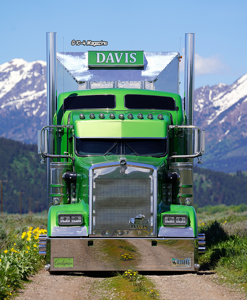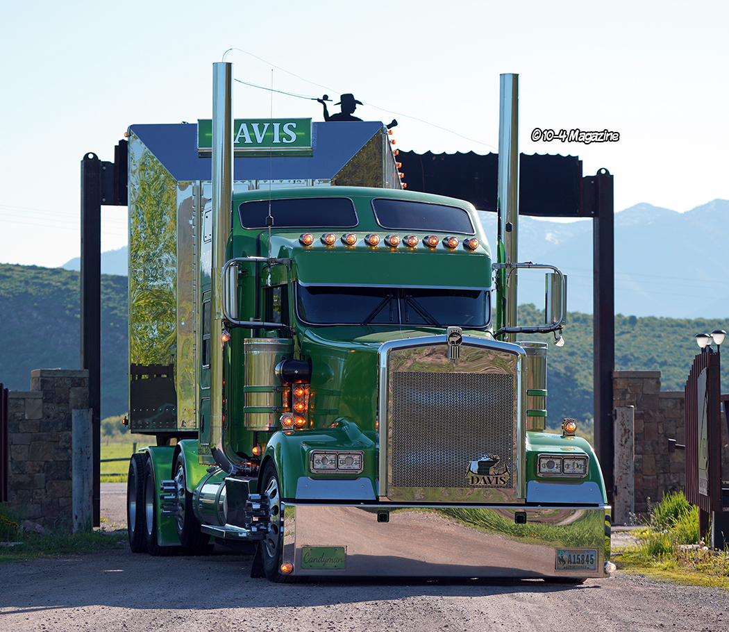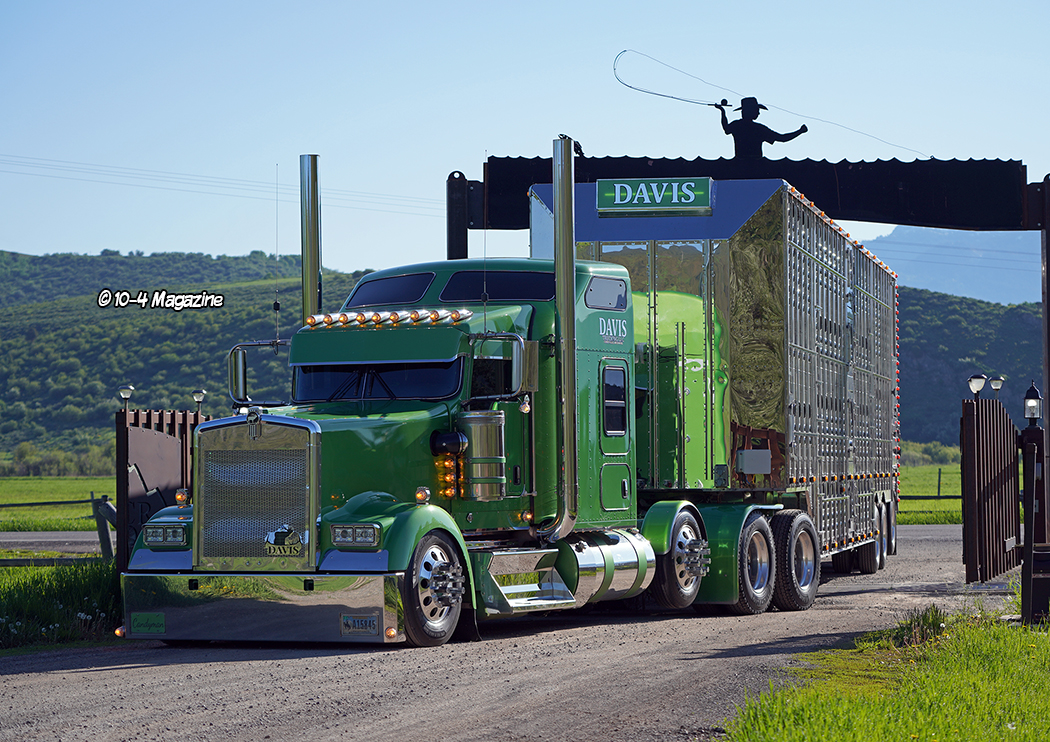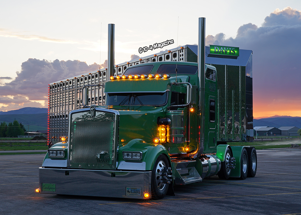 One of the states that come to mind when I think “out west” is Wyoming.  It is home to national parks, wide-open spaces, snow-capped mountains, wildlife, beautiful landscapes, and livestock.  Cody Davis (36) of Davis Trucking LLC out of Cokeville, WY, owner of the pictured green Kenworth W900L, has another name for Wyoming – home.