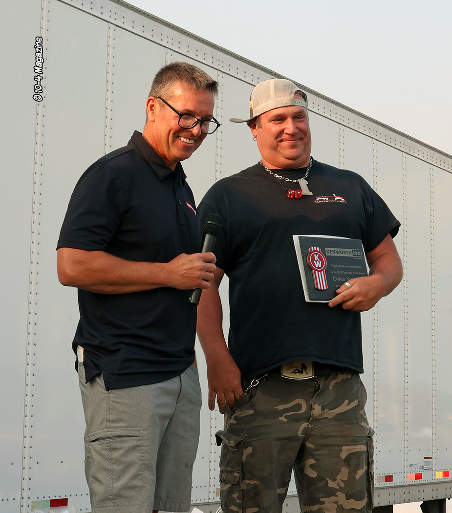 During the entire event, there was a video crew hired by Kenworth interviewing many of the Kenworth owners, and from what I was told, they are going to produce a special video for the 100th anniversary.  The video crew seemed to be everywhere during this event, so it will be interesting to see what they come up with.  Quiet on the set!  Apparently, their sensitive microphones could pick up a conversion from across the street.  Another person I got to meet was Colby Williams of Fueled Photography.  He actually came up and introduced himself to me!  He does great work and has done a lot for Kenworth (and is a great friend to 10-4 Magazine).  If you have seen the 100th anniversary W900L brochure and seen that shot in front of the Grand Tetons in Wyoming, that is his work.