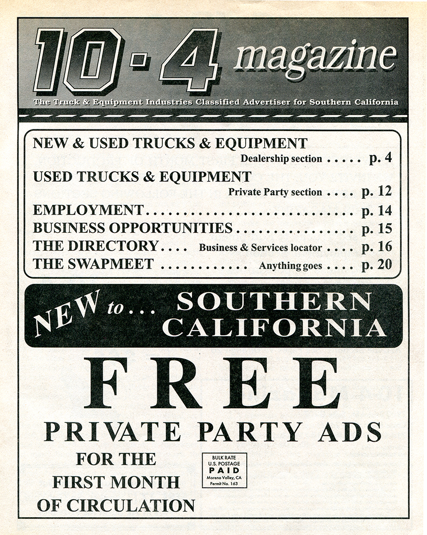 Founded back in 1993 in Southern California as a local advertiser for the trucking industry, our first issue, which was published in September 1993, had no stories, was only 24 black and white pages, and was printed on thin (and messy for your fingers) newsprint paper. We printed 10,000 copies of that first issue and randomly sent them to trucking companies and supporting businesses in and around Southern California. We also began setting up racks at various places in the area, establishing our initial mass distribution network, which today has grown to over 275 locations, in about 29 states, and five different countries.