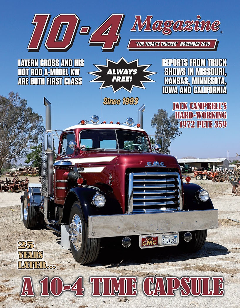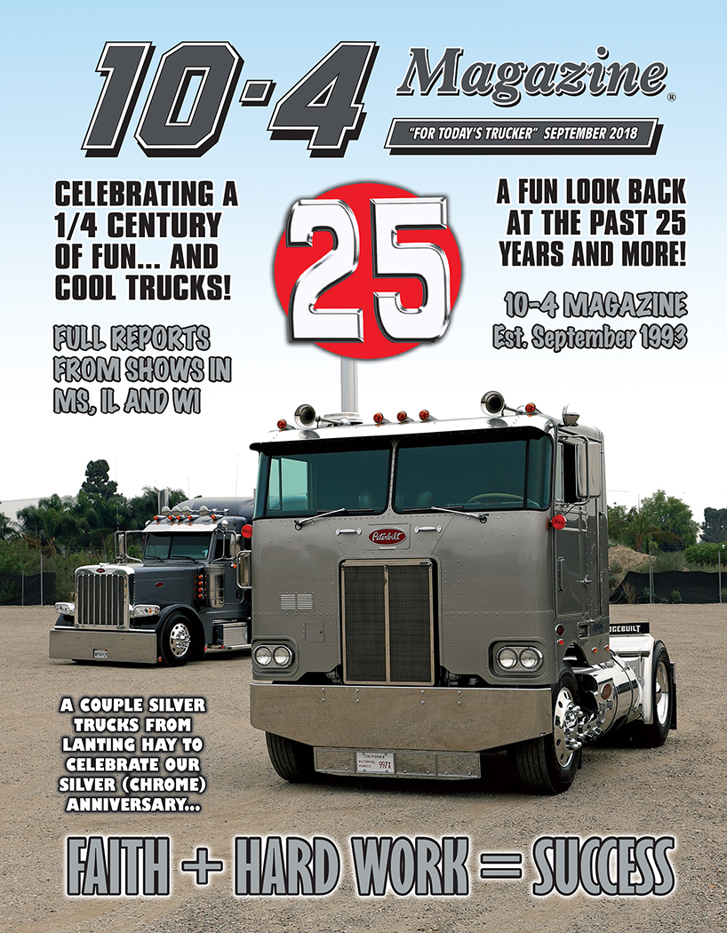 I would like to personally thank all of you for continuing to pick up and read 10-4 Magazine. Our goal is to keep providing you with great content and information, fun stories, and cool truck (and owner) features, because the owner of the truck is as – or more – important than the truck itself! Trucking is made up of an amazing group of people who are independent, hard-working, and totally committed, no matter the cost, and that describes everyone at 10-4 Magazine, as well. Here’s to 30 more years! Thanks for being part of our history and allowing us the honor of bringing this magazine to you for three decades. Our job is to make dreams come true, but truth be told, you all have allowed mine to come true, as well. And for that, I am forever grateful. Thank you.