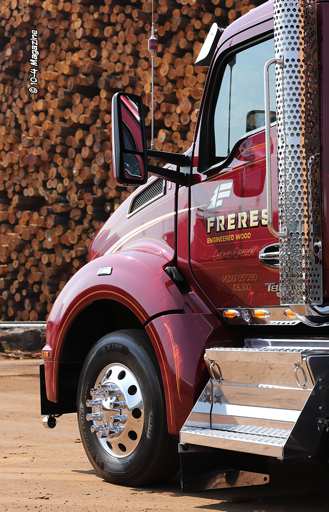 It’s not often we feature a company-owned fleet truck and its driver, but Eric (52) is pretty special and has a sterling reputation in the Pacific Northwest, and the Freres family (and company) is pretty special, too. In business for over 100 years, Freres is a multi-generational family-owned lumber operation. Eric has been a driver for Freres for 27 years now and still looks forward to going to work every day. And even though the company has three full time people that do nothing but wash trucks, Eric still does all his own washing, at least once a week.