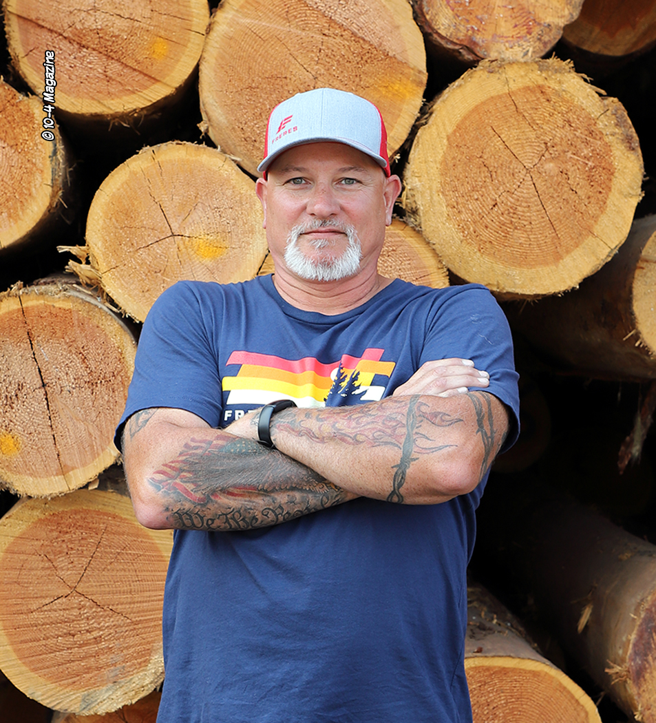 Another innovation that was recently added to the main facility in Lyons was a new crane, as seen in some of the pictures and the centerfold. This bright yellow behemoth, a Straight Track Woodyard Crane made by KoneCranes, can move east and west on the tracks it sits on, and north and south via the crane structure itself, and has a 35-ton capacity. It can pick up an entire load of logs off a truck and then set it down on the ground for sorting. Purchasing this piece of amazing equipment a few years ago, it actually set sail on a cargo ship, destined for the United States, from a port in Ukraine just one day before the Russian invasion began. Talk about a close call. One day later, and that crane might have still been sitting on the ship in port, waiting to leave that war-torn country.