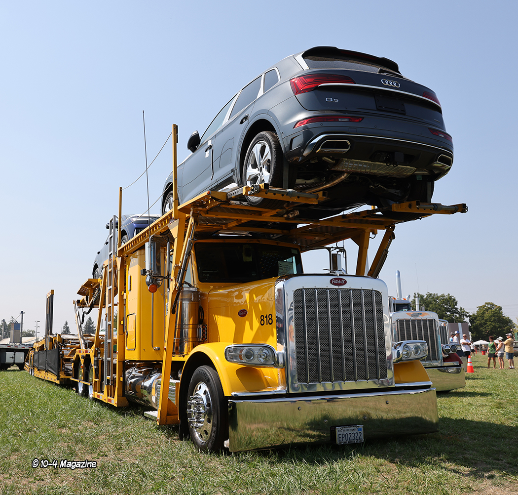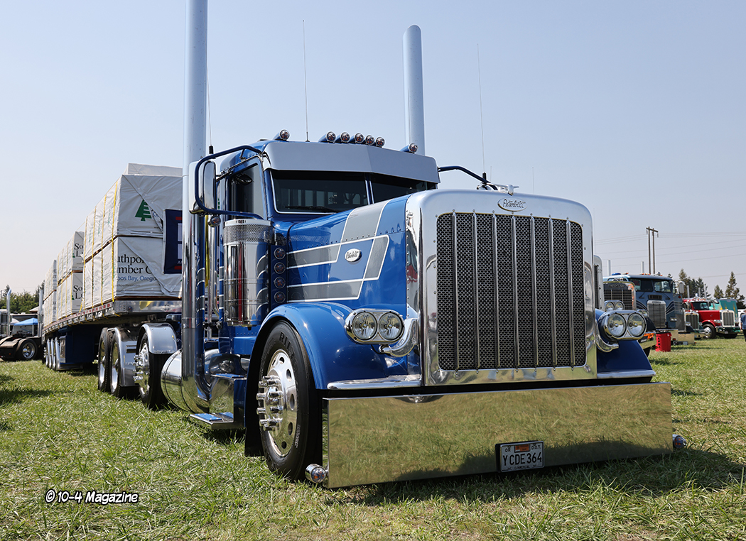 The show is divided into a few different areas.  In one area, amidst the grass and trees, are the antique trucks, and let me tell you, there was some of the coolest old iron you will ever see out there – especially old log trucks.  A few standouts in that area (and past cover truckers) would be Harm Speerstra, who brought out two sharp Peterbilt cabovers, and Larry Lemmons, with his fleet of two-tone green classics.  Then there is the grassy area with all the featured trucks that year (mentioned previously).  In this case, it was Kenworth trucks, so there was an entire field filled with KWs of all types and ages.  This is where Eric Griffith and two of his fellow drivers parked their Freres Lumber company trucks, which we decided to shoot for our October cover last month.