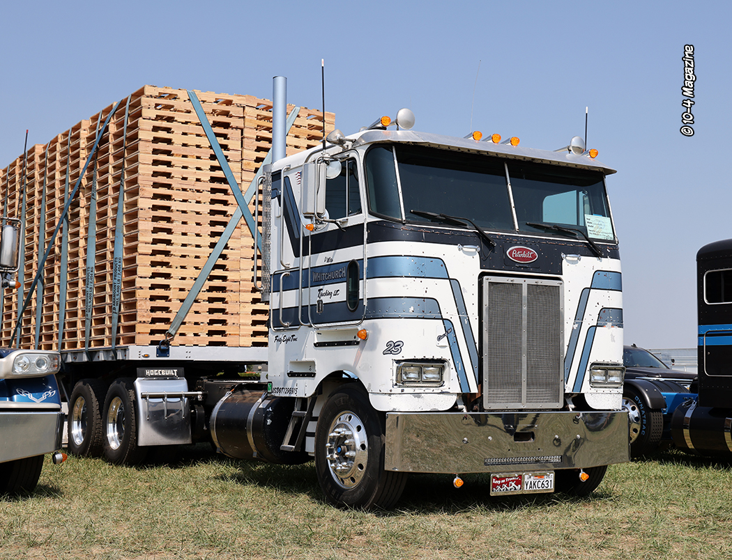 Our booth was situated just across from the Kenworth parking area, and we had a few cool cats around us, too.  Doug Veerkamp and his crew brought out a few antique trucks, along with their stellar 1966-ish blue Peterbilt service truck, which graced our August 2023 cover, and was parked right next to us.  On the other side, two trucks down, was our friend and past cover trucker Norm Butler and his cool KW combo, which appeared on our May 2021 cover.  Across the aisle from Norm was our friend and longtime contributor Bryan Welsh and his yellow Farwest Steel company ride everyone knows and loves.  And right behind us was Dale Callen’s red, black, and white restored 1955 KW that was on our cover way back in September 2003.  Seriously, we were surrounded by greatness!