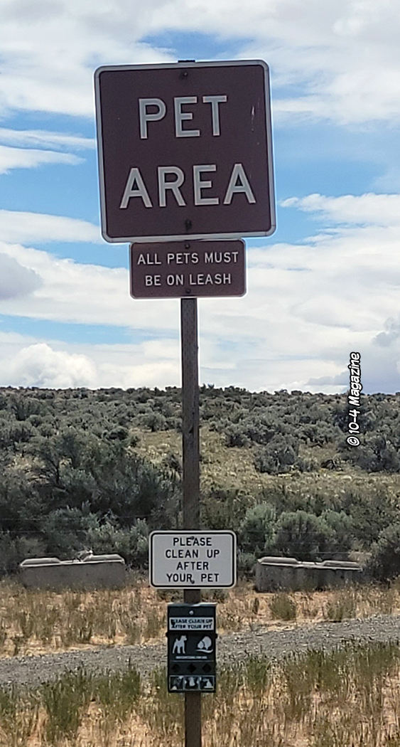 As I sit here thinking about wanting to crunch kibble, I see yet another rest stop passes by us at 65 mph. I get to thinking about the lush grassy areas some have to run around in. If I could read, I would be appalled that the “pet area” signs located in such areas are not grassy and lush but filled with ants and rocks. Just a dog’s thoughts, wondering why creators of these pet area zombie zones don’t consider that maybe I would like to relieve myself on grass and not gravel. However, given the choice, I would rather have a pet area than not, and I’m sure there is a good reason for them, though why, I know not.