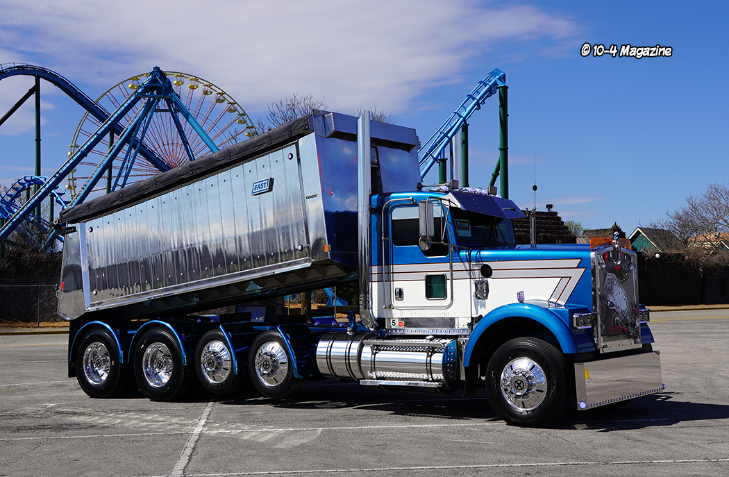Hunter Hubbard (30) and her husband Timmy of Winchester, VA own Dice Mayhem’s Trucking, and together they completely rebuilt and customized this 2005 Kenworth dump truck. Powered by a 3406E CAT hooked to a 13-speed, Hunter personally runs this truck daily hauling mostly asphalt. The truck has a ton of custom parts and recently got a new body. Sponsored by Trux, the rig showcases their new Smoke and Mirror fenders, as well as their Starlight watermelon dual revolution lights. They also won “Truck of the Year” from Full Tilt Performance, were featured in a music video by a band called Ganstagrass, and also attended the 2024 Large Cars and Guitars event, where they were part of the convoy that was recorded for the new Tony Justice music video. We would like to thank Hunter for reaching out to us, and our very own contributor Stephanie Haas for providing the photographs, which she took at MATS 2024.