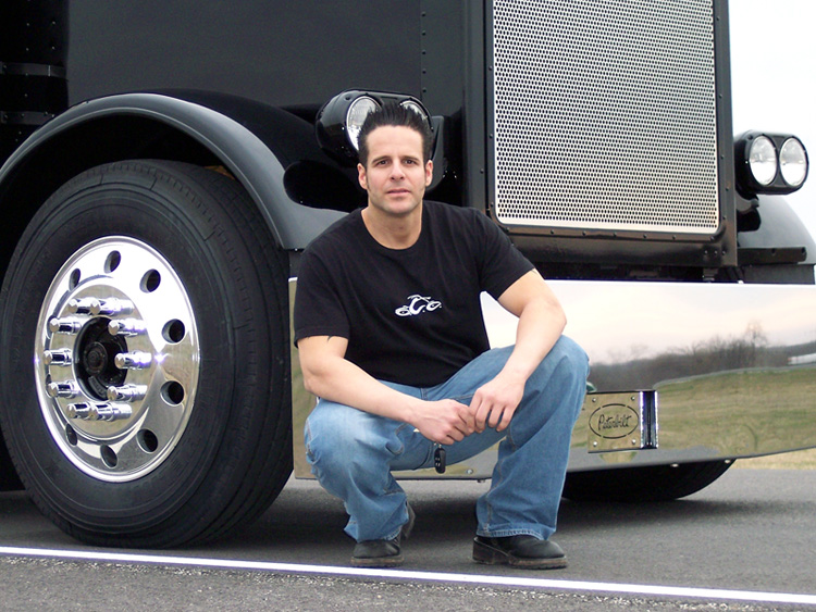 GOT WHEELBASE? Richie Acosta and I built this beauty last year, and boy it was fun. Many of you might already know Richie, but for those of you that don’t, here is a quick overview. Richie is from New Jersey and has been nuts about trucks since his brother Raul started a trucking company when Richie was five years old. He always tried to help with the trucks, and then in 1991 he got his first one – a Volvo straight truck (we all have to start somewhere). Next, he got an R-Model Mack tractor. Then he moved on to a 1993 KW W900L Aerodyne. He did quite a bit of custom work to it, including a stainless deck and a stainless-wrapped frame. Shortly after, he sold that one to buy a 300” wheelbase 1994 KW W900L (he had the frame wrapped on it as well). Then, in 1999, Richie decided to order another W900L KW – with a factory 320” wheelbase and a 60” modular sleeper (which was unheard of in his neck of the woods back East). He named this monster rig “Size Does Matter” and took it to many shows. That’s where it gets to me. In addition to the long wheelbase and powerful engine, this 2005 Pete 379 Extended Hood features a high-performance rear-end, a car hauler front axle, low air-leaf suspension, Michelin low-pro rubber and a 20” Valley Chrome bumper with a recessed license plate. The stainless grill and air cleaner screens were made by Roadworks and the grill trim, from a 379X, was powder-coated black to match the truck. We switched the headlights to 359 double-rounds (originals, not replicas) mounted on Double J brackets and removed all of the emblems. The factory air cleaners were replaced with powder-coated black Vortox cleaners with chopped screens and black brackets. The cab and sleeper panels were fabricated by Brunners and contain cosmetic rows of huck bolts to create the illusion that the cab and sleeper have been dropped. The cab doors were re-skinned without door handles, incorporating a remote pop-lock system. The passenger door’s “peep window” and top door mirror were removed and the driver side sleeper door was re-skinned without a latch and vent, operating with the same pop-lock system. The exhaust is an 8” Dynaflex three piece system with Pickett elbows. The 120-gallon fuel tanks are painted black and have covers over the strap bolts. The visor is custom made and painted gloss back on both sides. The inframe deck plate (which is also painted black on both sides) is 16 feet long and lies flush with the frame rails. WTI fenders mounted on custom brackets finish off the rear of this rig. Since Louisville, Richie has been running in the Northeast, hauling LTL freight in a stainless reefer that matches the tractor. Most weeks he has around 20 drops, and these places are tight – even for a normal truck. But Richie likes the challenge. People out there love seeing a rig like this actually working. Whether it’s clean or dirty, this truck is definitely an attention-getter. Other “projects” that Richie is working on include two trucking websites – www.eastcoastlargecars.com and his newly started www.westcoastlargecars.com. These sites are packed with information and photos from across the country. Although Richie is covered with tattoos and has a “bad boy” image, he’s really a down-to-earth, nice guy. The side of Richie that most people don’t see is the love that he has for his family – his mom and dad, his brother and sister, his wife Nieves and their two-year-old twin girls, Alexandra and Arianna. “They are out of control,” he says about his twins (I wonder where that comes from). I know that we all will be hearing a lot more about Richie in the future – he’s just that kind of guy. So stay tuned, and look for this rig at the truck shows or running back East. It will certainly spin your head (and blow your mind) when you see it! To view a complete collection of photos of this truck and to see the project from start to finish, visit www.gotwheelbase.com, a small site dedicated to this large work of art. Copyright ©