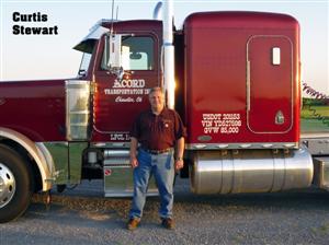 In 1990, Curtis married his wife Bonita, and then decided it was time for a change. He bought a 1986 Pete 359 from his dad and then signed on with Acord Transportation of Chandler, OK and started hauling propane. After hauling fuel and oil his entire life, it was a nice change of pace. He left Acord for a few years (2001 to 2004) to haul for Farmers Oil in Anthony, KS, but then returned to Acord, where he has been ever since.