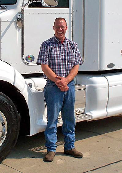 Blair’s older brother Rick has always been a truck driver - he gave Blair the itch, too. At 18, Blair began driving for a local feed mill until he was 23. At that point, he partnered with a cousin and started a dairy farm. They spent a few years building it up to a 250-cow operation and then got bored and sold out. Blair bought a used 1997 KW W900 flat top that was really decked out, and then went trucking.