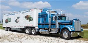 TRUCKS This beautiful blue 1975 Kenworth belongs to George and Marie Schroyer of Celina, Ohio. The truck is an extended hood model equipped with an Aerodyne sleeper and powered by a 400 Cummins engine with a 13-speed transmission. It is pulling a 1970 Great Dane trailer that houses George and Marie’s historical display of photos and trucking memorabilia, a popular feature at antique truck shows. Painted on the sides of the trailer are more of George’s trucks. On the driver’s side are a Silver Fleet Produce truck and the 1975 Kenworth. On the passenger’s side, at the far back end of the trailer, is a 1966 Ford N Series truck with a Cummins diesel pulling a 1960 Fruehauf reefer with torsion suspension. In the center is a 1962 GMC “Crackerbox” (one of the first production trucks with an air-ride suspension). At the front end of the trailer’s side is a 1953 GMC 3-cylinder diesel pulling a 1950 Gramm single axle trailer. And on the nose of the trailer, not visible in the photo, is a 1919 Model TT Ford. George and Marie own and operate Schroyer, Inc., a trucking company that has been in business for more than 50 years. They both love their old trucks and enjoy showing them off at truck shows. For more weird and wonderful old trucks, visit www.oldtimetrucks.org today. |