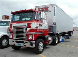 The first owner of this 1977 International Transtar II Model 4070B was the Carnation Can Company. They ran the truck in all forty-eight states for many years, hauling the materials for making cans as well as completed cans between various plant locations. The truck was wrecked in 1985 and then restored by the company in 1986. Later that same year, the truck was purchased by Robert Kutzler of Kutzler Express in Kenosha, Wisconsin. Robert drove the truck regularly until 1995. After that, the red and white rig was only used occasionally as a spare truck and the rest of the time it just sat in a garage. Last year Frank Kutzler and David Buffham got the truck running again (David had been driving a similar truck for Schneider National so he was very familiar with the model). David now works for Kutzler Express and gets to drive the old Transtar to shows and other fun trucking events. This classic cabover is powered by a 290 Cummins diesel engine hooked to a 10-speed transmission and 3:70 rears. The trailer is a 1978 Trailmobile dry van. Kutzler Express was founded in 1982, continuing a trucking legacy originally begun in 1928. Kutzler’s primary areas of operation are the states of Wisconsin, Michigan, Indiana, Illinois and Ohio. Today, the company, which owns about 130 trucks, hauls some general freight but mostly focuses on food products and household goods.