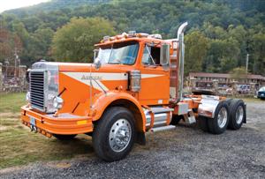 This 1972 Autocar A-64B was purchased new by George Stillwell. George, along with his dad and brothers, ran a construction business called Stillwell Brothers, in Sylva, NC. When George purchased the truck it had a Cummins NTC 335 engine and a RTO 9513 transmission. They used the truck to haul heavy equipment from job to job in the area. Some of the heaviest loads this old truck hauled back in the 70s and 80s were a Euclid/Terex TS24 scraper and an Allis-Chalmers HD-21A dozer grossing over 130,000 pounds. One time George was asked to haul a large crane. The owner did not think the Autocar could pull it. After getting it loaded, as he started out, the front end of the truck came off the ground but then settled back down when it began to roll. In 1980, George’s wife (Madge) gave birth to two boys. These twins grew up with the Autocar and were driving it around the company yard before they were 10 years old. In 1998, George and his brothers changed their company name to Stillwell Enterprises and the twins (Luke and Jeff), at age 18, started their own construction business under the old Stillwell Brothers name. The Autocar was their first piece of equipment. After having it repainted, they had the frame stretched, replaced the worn out engine with a rebuilt Cummins 350 and then installed dual straight stacks. Since then, the twins have taken the old truck to numerous shows and events, but they still work it from time to time.