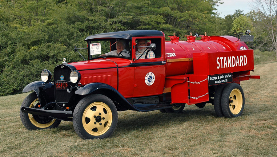 George and Lois Wacker of Manchester, MI own this 1931 Ford Model-A truck. When George was a child, there were very few service stations. George’s father worked for Standard Oil and drove a truck that brought petroleum products to the customer’s house. The truck had four separate tanks to carry four separate products. This arrangement consisted of three 100-gallon tanks and one 150-gallon tank. There was a mechanical counter on the back of the truck that kept track of the purchases in five gallon increments by pulling a chain. George often rode with his father to make the deliveries. “My job as a kid was to pull the chain on the back of the truck,” remarked George. There were also “side cars” on each side of the truck that carried a half-barrel of motor oil. Back then, farmers used thrashers that required motor oil and grease every day. “The farmers would tell my dad where they were going to be and how much oil and grease they needed. He would go daily to meet the thrashing machines, fuel the tractor and bring their motor oil and grease. It was a service station on wheels.” George wanted a truck that was a replica of the one his father drove, which was a Model-A long bed. There are a lot of short bed trucks still around, but the long beds are rare. George found one twelve years ago and then it took him ten years to find a tank. He then restored the truck based on one picture and the memories of a five-year-old. Every effort was made to ensure that every detail was accurate. The truck is a tribute to George’s father and a fascinating insight into the history of trucking. To see more weird and wonderful old trucks, visit www.oldtimetrucks.org today.