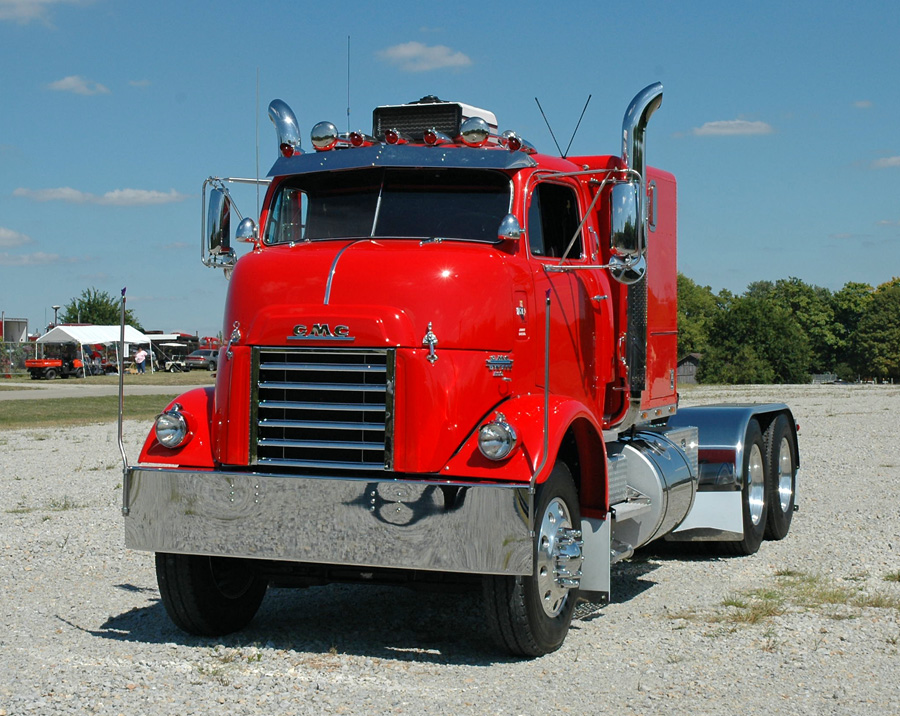 Joe and Ruth Cumberland of West Virginia own this 1950 GMC Model 860. In 1978, Todd Kelly drove this “Cannonball” from Oklahoma to West Virginia, then removed the 32-inch aftermarket sleeper and parked it for 20 years. When Joe bought the truck it was in sad shape. Joe spent 2,900 hours over four years on the restoration and bought another Cannonball for parts. He used the doors, fenders, head light buckets and a few other pieces from the parts truck. Joe started out with just a Freightliner cutoff frame, which he stretched four feet and added air-ride suspension (originally it was a tandem with a tag axle and it rode really rough). Joe made all of the body parts, including the rocker panels, and extended the back of the cab six inches for more room between the seat and the steering wheel. When he installed the new sleeper, he removed the bunk bed and added a bench seat that makes into a 48-inch bed. The bench seat in the sleeper was equipped with seat belts so that the grandkids can ride along in parades. For some much-needed steering parts, Joe bought and salvaged parts from a 1978 International and then added air conditioning for comfort. Lastly, he replaced the Detroit Diesel with a 400 Cummins Big Cam 3 engine and added a 13-speed double-overdrive transmission. He had to lean the engine about 12 degrees to make everything fit. Joe says he’s not sure how fast the old truck will go – the speedometer only goes to 80 mph, but at that point he’s still got two more gears! To see more weird and wonderful old trucks, visit www.oldtimetrucks.org today.