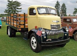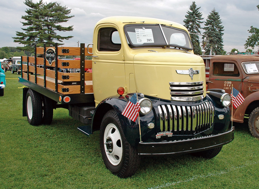 When Dayton, Maryland resident Bill Marlow bought this 1946 Chevrolet two-ton cabover it was brown – rust brown. In the “for sale” ad, the owner said that the truck just needed finishing, so Bill struck a deal and had the truck shipped home from Indiana. Disassembly began and before long Bill had the truck in a thousand pieces. With plenty of help and advice from the “tribal elders” at a website devoted to antique Chevrolet and GMC trucks (www.stovebolt.com), Bill was able to turn a rust bucket into a show piece. He said, “It took gallons of WD-40, plenty of skinned knuckles, and three years of time.” The paint scheme was his idea but, aside from that, the truck has been restored to mostly original condition. It has a four-speed 235 engine, a two-speed vacuum operated rear-end, a GVW of 16,000 pounds, and sits on a 158-inch wheelbase. The day he started the engine, pushed in the clutch, put it in gear, and drove the truck out of the garage for the first time was the thrill of his life. Looking at the final product, it is hard to believe that Bill had never attempted anything like this before. However, the bug has bitten him, and he is ready to start on another old truck restoration – a 1972 GMC 9500. He’s now, like so many of us out there, a “certified” old truck nut! Welcome to the club, Bill!