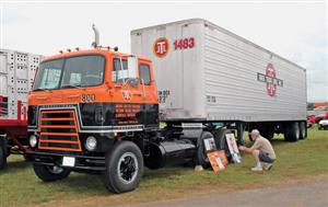 Geoffrey Roberts of Baxter Springs, Kansas is the proud owner of this 1970 International 4070A Transtar. It was originally a Jones Truck Lines road tractor, purchased new in 1970 for $19,500. The truck is powered by a naturally aspirated 250 hp Cummins engine, backed by a 9510 Roadranger transmission, and has a Hendrickson walking beam suspension. The five-window cab design was almost exclusive to Jones tractors up until the mid 1970s when they went to non-sleeper units. All Jones tractors were tandem axle, as they transported both LTL and truckload freight, and pulled both van and 24’ pup trailers until the 1980s. As a result of deregulation, Jones transitioned to only LTL freight and primarily double-trailer setups with single axle tractors. Geoff bought this tractor in 2007 from Kenneth R. (Red) Sharver of Monett, Missouri. This tractor, No. 800, is dedicated to Dwayne Wagner, a long-time JTL driver out of Wichita, Kansas (his truck would have looked very similar to this one). The old Transtar is seen here pulling a 40’ 1965 American van, an original JTL trailer with its original number (#1483). It was used for storage for many years in Lebanon, Missouri before Geoff found it behind a strip mall. Although Jones often operated equipment older than its competition, everything was always kept in top shape. Geoff is keeping up that tradition with his careful maintenance on this old JTL rig.