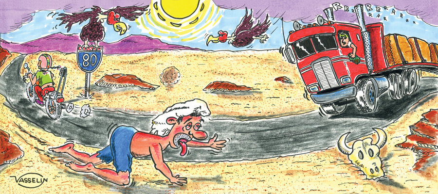 This month’s poem is meant to be a light-hearted and funny portrayal of a stranded motorist who seems to have an optimistic view about an otherwise miserable circumstance. I once found myself stranded on the Salt Flats of Utah when the transmission in the van I was driving failed and I had to find a ride to Wendover, Nevada. Then, I had to get another ride back to Salt Lake City to get a rental truck that would haul myself (and the van) home. It was ridiculously hot and my friends and I were less than optimistic about our situation. Although none of the events mentioned in the poem really relate to what we went through, I certainly empathize with anyone who has ever had to walk that stretch of I-80 without any water or food. Thank God for our truck drivers for lending a helping hand to their fellow motorists! I hope you all enjoy this one.