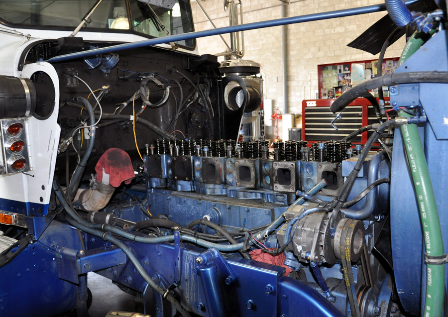 There seems to be a lot of confusion in the trucking industry pertaining to in-chassis engine rebuilding versus out-of-chassis engine rebuilding. I thought that it would be a good idea to go over what we typically do during each of these different types of rebuilds. Basically, an “in-chassis” rebuild means that the engine stays bolted to the engine mounts in the chassis of the truck during the rebuild, while “out-of-chassis” means that the engine is removed from the truck and rebuilt on an engine stand on the shop floor. These rebuilds are very similar, but the out-of-chassis rebuild is much more thorough.