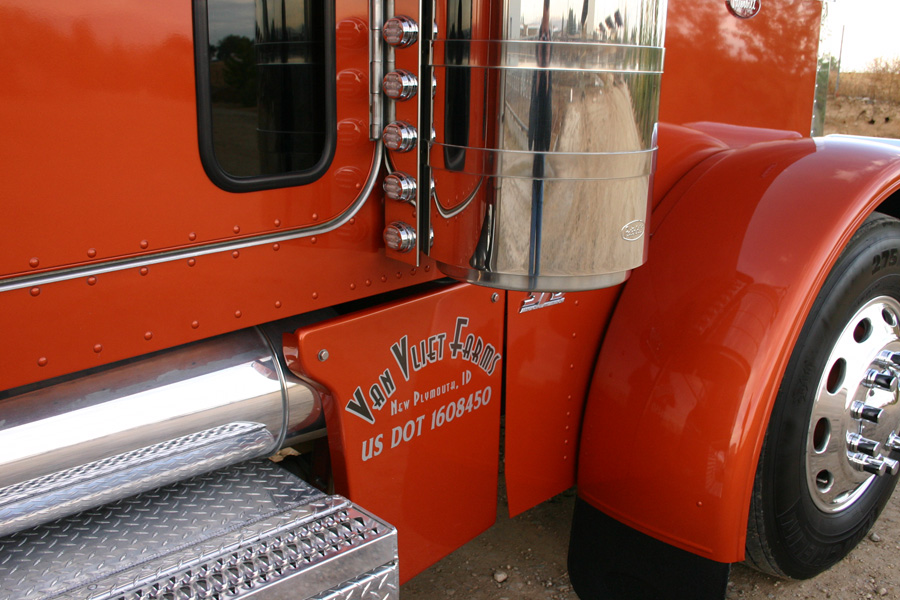 Growing up on his family dairy in New Plymouth, Idaho, Blake Van Vliet quickly realized that it took trucks to feed cows. In 2006, just a few months before his 21st birthday, he ordered this #57 Legacy 379. Powered by a 550 Cat and pulling a matching set of Western Elite flats, Blake primarily hauls hay and feed products around the five northwestern states. Blake is very proud of his family and their many years of hard work and dedication in the dairy business. If you see him, give him a wave. He’s easy to spot, because he’s always smiling!