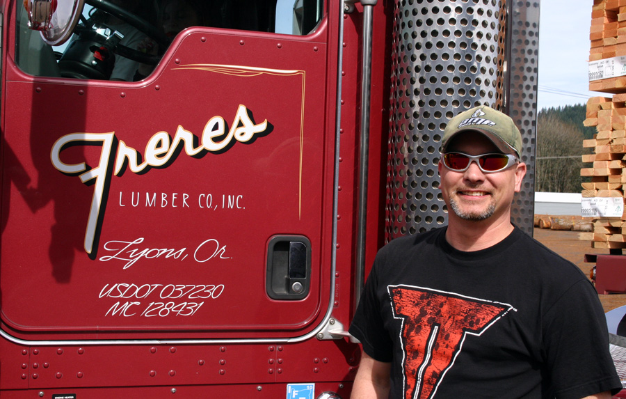 One thing’s for sure, every time I’ve seen Eric Griffith in his Freres Lumber Kenworth, it’s always been pressed out, rain or shine, literally! Freres Lumber of Lyons, Oregon, has been providing the Northwest with lumber and plywood products since 1922 and Eric, who has been driving for them for over 14 years, gets to cruise this class-act 2004 T800 all around Oregon and Washington. Eric’s wife Becky, along with their two kids Courtney (9) and Carter (6), obviously do quite a good job helping to keep their dad’s show-on-the-road looking great.