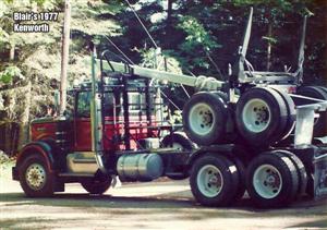 Blair grew up throughout the 1970’s glued to his dad’s hip. His dad Ed owned a logging company so, naturally, by the time Blair was big enough to pack his own tools out of the crummy (their crew-cab maintenance pickup), he was more than eager to get up to the log landings with his dad to help maintain and repair all of the logging equipment. Blair enjoyed mechanics, so after graduating from high school he underwent a two year diesel tech program. By June of 1983, Blair decided that he just had to have a nice log truck and there was only one paint scheme he wanted – red and black with a gold-outlined red stripe. So, with a fresh coat of red and black paint, Blair was off and running with a beautiful 1977 Kenworth A-Model.
