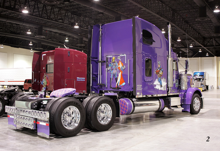 (photo 4), Nick Mitchell’s purple Freightliner adorned with superheroes