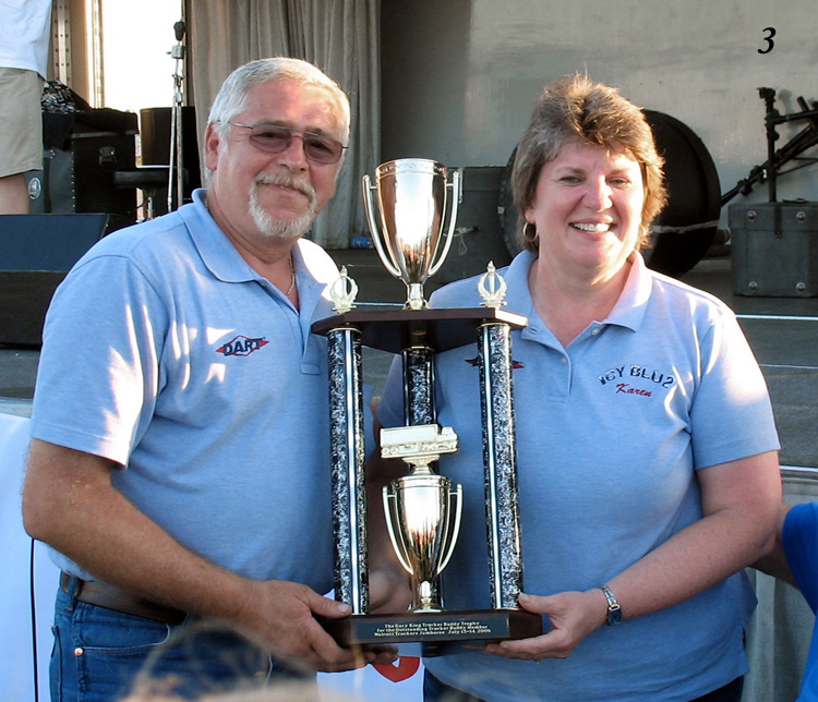 The first Gary King Trucker Buddy Award went to Harvey and Karen Zander (photo 3). They were flabbergasted and truly surprised, but there wasn’t anyone there more deserving of this honor. Harvey and Karen always go above and beyond what’s necessary when they visit their class. The Trucker Buddy Log Book was designed by the Zanders and Karen always makes the coolest things for their kids (key chains, posters, the list is endless). We’d like to congratulate them on winning this prestigious, first-ever award. If you are interested in becoming a Trucker Buddy, call them at 1-800-MY-BUDDY. You won’t regret it. School will be starting soon and lots of teachers would be happy to have a trucker for their class. And if you’re planning on attending the 2007 Truckers Jamboree in Walcott, Iowa, be sure to mark your calendars for July 12 & 13. Come out and see what’s new next year. We’ll see you there! 2007-2004 BOBTAIL: 1st Michael Barry, Pilot Grove, MO (Nothing Left To Say); 2nd Randy & Michelle Kramer, Ankeny, IA (Excalibur); 3rd Dave Hinz, West Bend, WI (Blue) (photo 4). 2003-1997 BOBTAIL: 1st Rusty Wyrick, Mansfield, OH (French Quarters); 2nd Harvey & Karen Zander, St. Louis Park, MN (Icy Blu 2); 3rd Glen Page, Camden, MI (Precious).