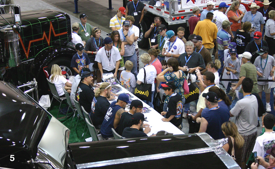 Over at the Western Star booth, they were busy celebrating their 40th anniversary, handing out free limited edition hats that seemed to be on every head in the building by the end of the show. And to help celebrate in their booth, Ted Siebert of Woodstock, Illinois spent the entire three days of the show creating a 4900 EX Ultra-High Stratosphere Sleeper using only sand, water, a small trowel and a truckload of talent. Our congratulations go out to Western Star for reaching this amazing 40-year milestone. Some other fun events that took place at GATS included a free concert by Aaron Tippin on Friday night (sponsored by Mobil Delvac) and female country-rock duo The Wreckers on Saturday night (sponsored by Volvo). There were also a host of celebrities posing for photos and signing autographs in various booths throughout the show. And no truck show would be complete without an appearance by the Chrome Shop Mafia. The “boyz” created quite a commotion on Saturday as fans lined up for hours to say “hello” and get an autograph (photo 5).