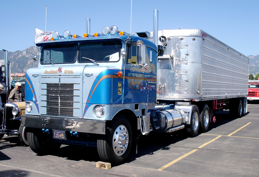 Belcher’s beautiful two-tone blue 1953 Kenworth Bullnose, powered by a
