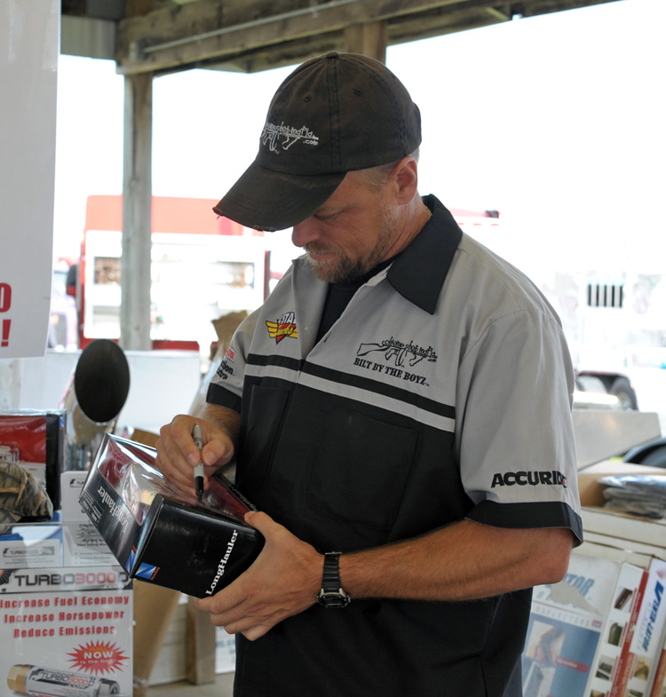 Friday was setup and parking day. Trucks rolled in all day and were parked in every nook and cranny of the fairgrounds as the 25 or so vendors put up their displays. After some rain came down late Friday afternoon, all of the participants and vendors were treated to a free dinner and live music provided by Trouble Shooter. After the sun went down, many of the truckers turned on their lights and began making a lot of noise with their horns and Jake brakes. One cabover that was there for the truck pull was “turned up” so far that his rig was spitting out 10’ tall flames from his stacks. This truck truly lit up the night and ignited the crowd.