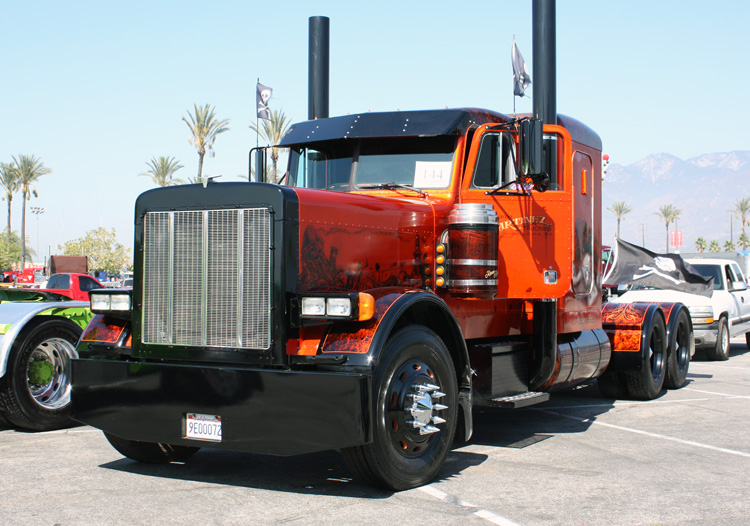 The judges began walking the lot early Sunday morning and did their best to finish scoring every truck as fast as possible. And with over 250 trucks in attendance, there were plenty of stand-out rigs to catch their eye and slow down their progress. Some of the usual suspects included Mike & Melvin Maggini and their pair of yellow Peterbilts with green flames; Jeff Botelho and his wildly-flamed blue trucks (including a convertible Peterbilt); Robert Doyle of Golden Bear Marketing and his impeccable gasoline tanker; and A & L Truck Supply’s custom, red, antique show Pete. But there were a few names and trucks that you might not know as well, too.