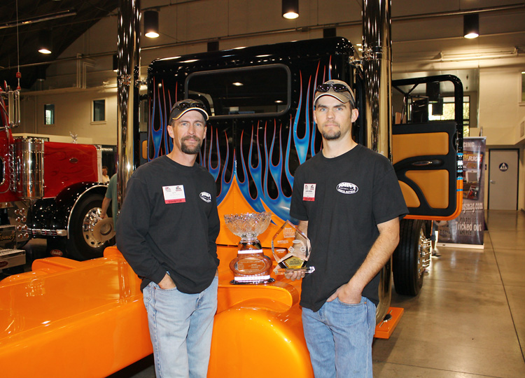 BEST PAINT (LIMITED MILEAGE): Jeff Davidson of John’s Truck Repair for Owner Mike Salinas – 1997 Black, Orange & Blue Flamed Peterbilt 379.