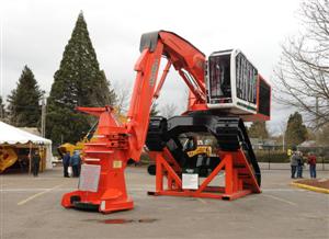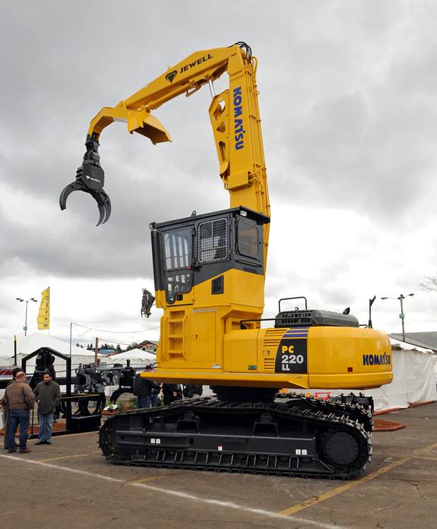 Filling four buildings and a parking lot, there was a lot to see and do at the show. Outside, huge pieces of equipment were on display including self-leveling harvesters, log loaders/stackers, delimbers, chippers, shovels, skidders, a large variety of cutting attachments, and much more. This stuff was heavy duty and high-tech! Inside was a bevy of vendors featuring all sorts of cutting tools and equipment, reforestation supplies, log trailers, communication devices, clothing, financing options, rigging supplies, logging publications, safety organizations and more. There was also an antique log truck display and hundreds of old photos from the last 150 years of logging in the Northwest.