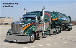 DIESEL DAVE’S PICK OF THE LITTER: Ron Baird – 2000 Green Peterbilt 379 and 2000 Heil Dry Bulk Tank (Hoffman’s Hotrod).