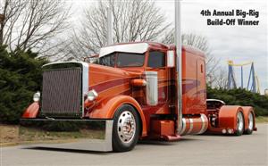 This year’s winner of the 4th Annual Big-Rig Build-Off was Randy Stroup of First Class Services in Lewisport, Kentucky. Randy took both the People’s Choice trophy and the Engineer’s Choice award. Starting with a stock 1986 Peterbilt 359, Randy and his crew, which included Roger Blair, Frank Estes, Greg Boarman and several others, transformed the plain truck into something truly spectacular. Featuring a tricked-out Cat 3406 under the hood, twin sticks inside, a 305-inch wheelbase and pleated body panels on the back of the 63-inch flattop Unibilt sleeper, the truck was painted with an exciting mix of Copper, Burnt Orange and Candy Red paint. Other details include several custom body panels from 12 Gauge Customs, the “First Class” logo engraved on the ends of the axles, and “Twisted Sticks” made by Outlaw Customs in Colorado for the shifters, the clutch pedal, the sleeper suspension track rod and the radiator supports. The interior is pretty amazing, too. Much more was done to this truck, but there is just too much to list it all here. Randy plans on taking the truck to several trucking shows and events this year, so keep an eye out for it (it would be hard to miss) and check it out for yourself – you will not be disappointed.