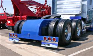 In the Bobtail class, 3rd Place went to Bob Panella and his old 1950 red Mack LT (which was featured on our June 2002 cover); 2nd Place went to Tom Zayas and his white and maroon old-school painted Peterbilt; and 1st Place was awarded to Bruno Cerri and his red “Trucks N Stuff” Peterbilt.