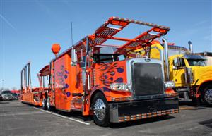 COMBO (LIMITED MILEAGE): 1st Paul Stanchio, 2009 Orange & Blue Flamed Peterbilt 388 and 2009 Cottrell Car Carrier; 2nd Vinnie Diorio, 2005 Orange & Grey Peterbilt 379 & 2008 Mac Trailer; 3rd Ronald Baird, 2000 Green Peterbilt 379 and 2000 Heil Tanker.