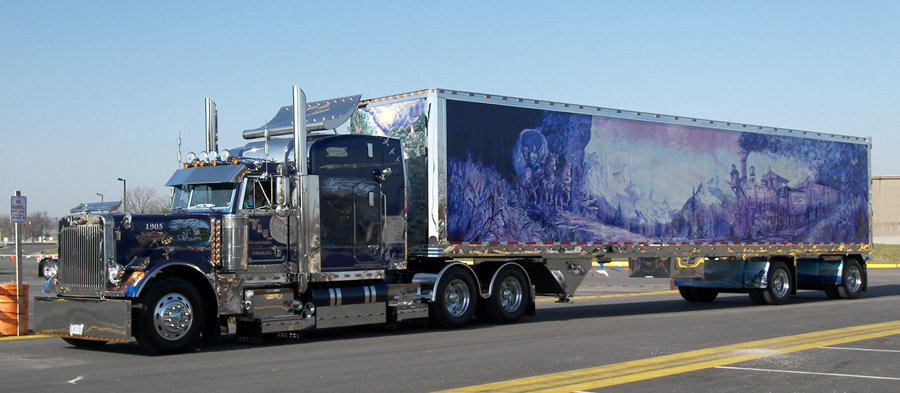 BEST OF SHOW WORKING COMBO: Marcel Pontbriand, 1989 Midnight Blue Muralled Peterbilt 379 & 1992 Stoughton Dry Van – “Little Train”