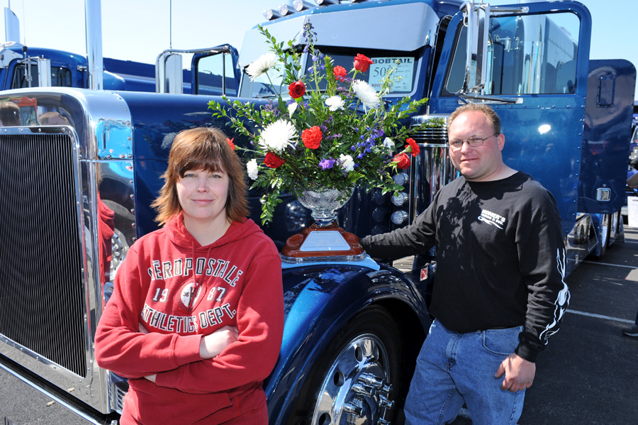 PAINT (COMBO): 1st Todd & Beth Roccopriore, 1993 Purple & Black Peterbilt 379 Extended Hood & 2009 Mac Dump Trailer; 2nd Marcel Pontbriand, 1989 Midnight Blue Peterbilt 379 & 1992 Stoughton Dry Van; 3rd Bill Gibson, 1997 Yellow Peterbilt 379 & 2006 Transcraft Eagle.
