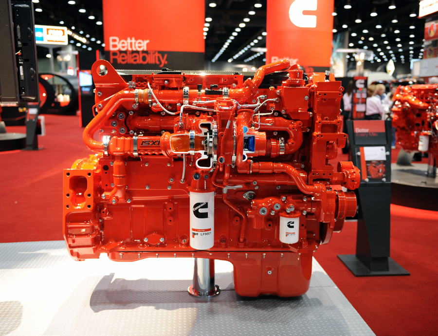 Walking around the show, we noticed a few booths that were worth mentioning - most notably, the Cummins booth. With one of the largest booths in the show and an impressive array of bright red displays and red neon lights, the booth had over 25 big screen TV monitors mounted throughout the space. On one wall, there were at least 9 of these big screens, mounted all together, forming one huge screen. It was pretty awesome. Cummins was promoting their new ISX15 engine, which is