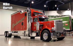 Some other trucks that earned high honors were Marcel Pontbriand’s “Little Train” Peterbilt which won the coveted People’s Choice trophy, and Andy Zary’s beautiful 1959 purple Mack “Touch of Class” which took the Best of Show Limited Mileage Bobtail award. Wes & Bruce Malmgren brought out two clean Peterbilts – one that featured a flashy green and black paint job and another that was silver with dark blue fenders. The silver truck took a first place in its class (Working Bobtail 2005 & Newer), while the green one earned a third place trophy in its class (Working Bobtail 2004 & Older) and a second place trophy for its paint and graphics. Although it did not take any trophies, Mike Harrah’s red “Budweiser” Peterbilt, featuring a huge sleeper with an enclosed garage for his motorcycle, got a lot of attention.