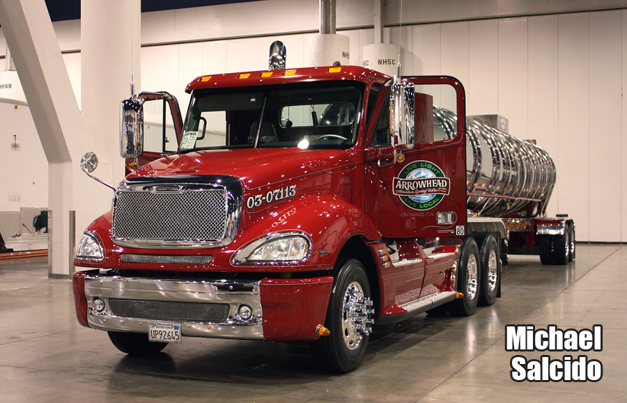 BEST OF SHOW WORKING COMBO: Michael Salcido, Arrowhead/Nestle Water, 2007 Red Freightliner Columbia with 1991 Brenner Tanker.