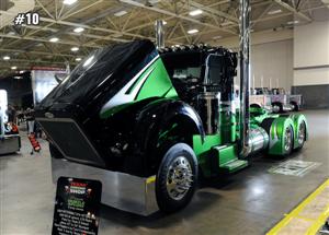 BEST OF SHOW (BOBTAIL): Mitch Larson/Pat Eilen Trucking, 2010 Black & Lime Green Peterbilt 389 (photo #1).