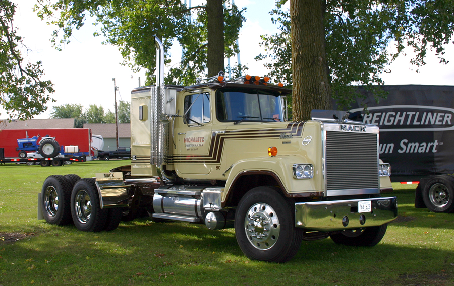 This year’s event was held September 10-11 at the fairgrounds in Kasson, Minnesota. I was lucky enough to roll into the 2010 Big Iron Classic driving Kevin Kramer’s dark green 1980 Peterbilt 352 cabover, following Kevin and his good friends Buck and Brent, into Kasson. Just over 500 trucks joined us on the grassy grounds surrounding the dirt track where the truck pull takes place. And since nobody is competing for trophies, everybody is laid-back and stress-free. Many truckers took advantage of their time at the show and spent much of the weekend cleaning and polishing – at least until the sun went down – then the fun really began!