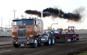 On Saturday afternoon, around 100 rigs fired up and hit the road for the annual cruise through a few nearby towns. The truckers were greeted by cheering residents that lined the entire route and honked their horns. We all had a lot of fun during the parade, but we wasted no time in getting back to the fairgrounds in time to park the wagons and grab our seats for the truck pull! Being at the Big Iron on “official business” for the magazine, I was allowed to go out on the track, which was really cool. It’s not every day that you get a front-row seat to see trucks with their front wheels in the air, tugging a sled hundreds of yards down a dirt strip, and coming right at you! At the end of the night, the “King of the Hill” (KOTH) award in the Open Class went to Jack Keilmeyer and his white Peterbilt 379, while the winner of the KOTH award in the Working Class went to Brent Hamilton and his powerful blue Freightliner FLD120. In regards to the evening’s festivities, let’s just say that the smell of burnt fuel in the air went well with the beverages.