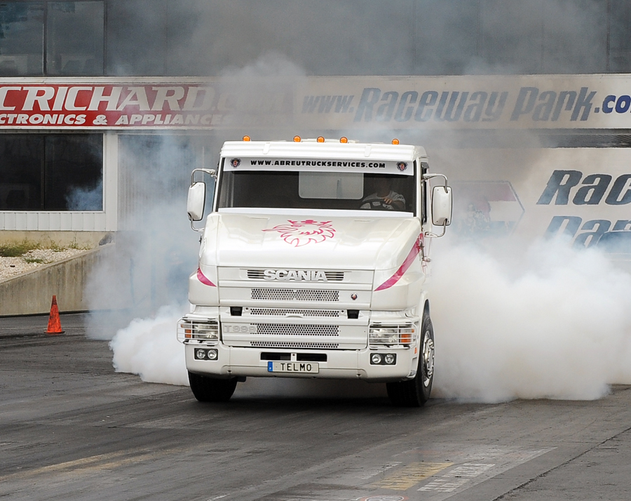 Throughout the day, about 250 of the big rigs in attendance made their way out onto the track to do some racing. Their goal: to be the “King of the Hill” and earn themselves $5,000! As the day wore on, the field began to narrow. By the end of the day, only twelve trucks remained. Those last few rigs earned the right to come back later that evening and race under the lights for the title and the cash during the Motorsports Spectacular.