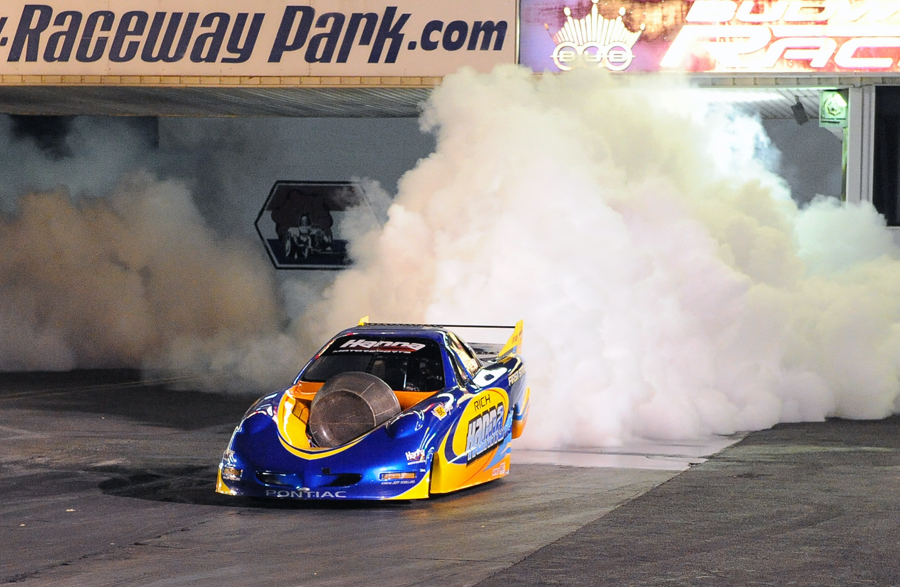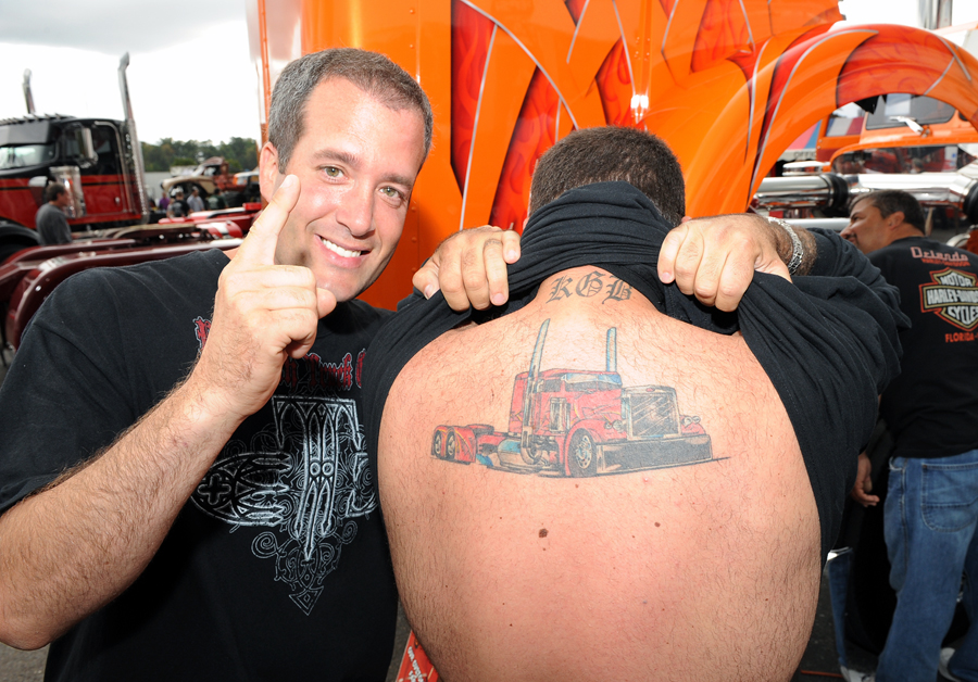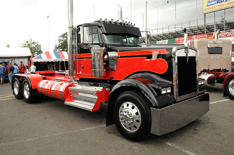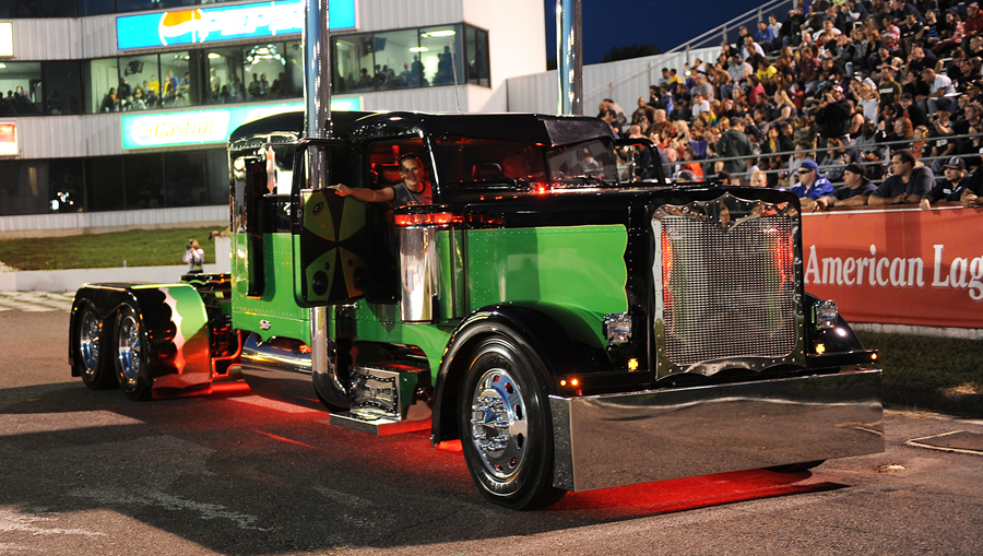 On display in the ETC area were some of the finest working trucks they have ever built, including a 2007 Kenworth W900L roll-off (Sumthin’ Sik), a 1999 Freightliner Classic XL (Bruizer) that was featured on our January 2010 cover, Paul Stanchio’s 2009 Pete 388 “Hot Wheels” car carrier (our November 2009 cover truck), and several other cool rides. Mike from RoadWorks came out from Indiana with their company show truck. Built to be a rolling display, this sharp black and grey Peterbilt 389 showcases many of RoadWorks’ newest products. The infamous “Beast” was also on display, and it always draws a huge crowd and lots of cameras. Sometimes, there were so many flashes going off at once, it looked more like a Hollywood red carpet event than a truck show in Jersey. As the day came to a close, a crowd of people gathered in the ETC area for the awards ceremony. After all of the winners were announced, it was time to head to the track and find a seat for the evening’s festivities – the Motorsports Spectacular.