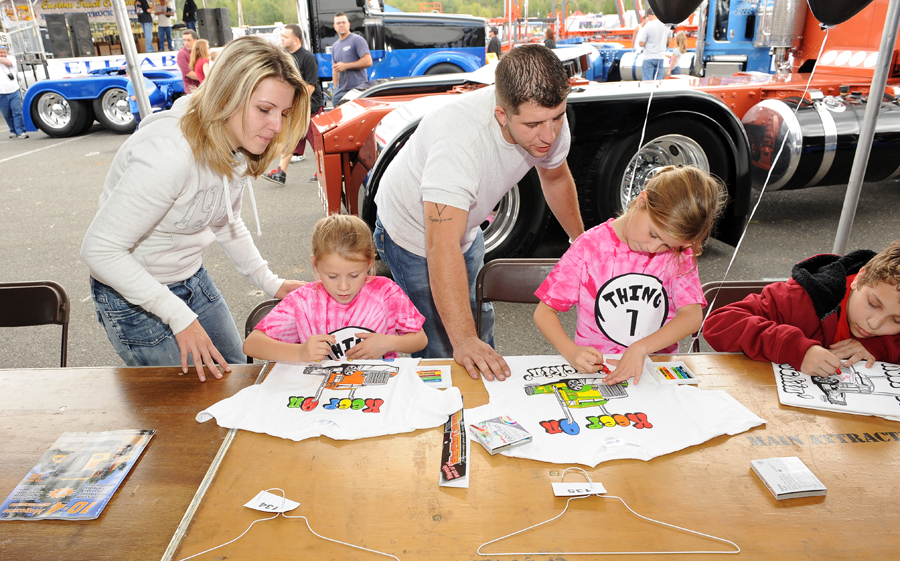 Inside the vast area reserved for ETC, there were a few vendors on display including Merritt, RoadWorks, 10-4 Magazine, Lincoln Chrome and Cool Truck Components. There were also many other vendors, spread throughout the show, outside of the ETC area. Back in the ETC area, Steven Pesce got a kick out of shooting free t-shirts out of a canon and into the outstretched arms of the people in the crowd. ETC also hosted a kid’s t-shirt coloring contest. Some of the parents were more into it than the kids, but it was still great family fun.