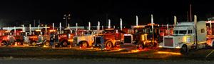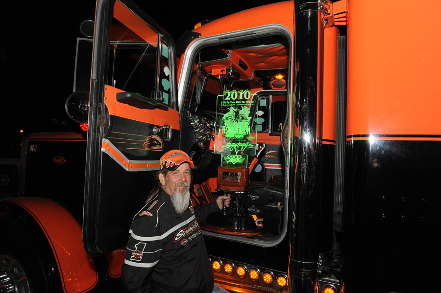 As the sun began to set, it was time to light the bonfires again and then say all the thank yous, give away some prizes and announce all the winners. Truckers held a Poker Run and the winning hand, five aces held by Jerry Kissenger, earned him a Merritt aluminum toolbox and a pair of winter jackets from Lincoln Chrome. Several valuable gift certificates for 4 State Trucks were given away – two for $500, one for $1,000, and a $2,000 certificate, which was won by Bob and Shelly Brinker. Three lucky truckers also received some “10-4 Bucks” ($104 in cash). In addition to the regular classes, a few “fun” awards were also handed out. John Stotlzfus was awarded the “Least Likely to be Caught with a LEGAL Load” award, while Charlie Bates was named as the recipient of the “Most Loyal and Longtime 4 State Customer with a Truck in the Show” award. Bob Wolfe was recognized as the driver in attendance who has held a CDL/Chauffer license the longest (56 years), and Randy and Jona Rebillard were named as the truckers who travelled the furthest to be at the show (from Manitoba, Canada). And the rest of the awards went to: